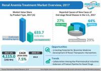 Rise in the prevalence of chronic kidney disease is the key factor responsible for the growth of Renal Anemia Treatment market. According to a latest research by PMR, the global Renal Anemia Treatment market is anticipated to have accounted for US$ 4,115.0 Mn, in terms of value, during 2017. The report on Renal Anemia Treatment further projects significant growth potential with average year-on-year growth rate pegged at 7.5% over the period of 2018-2026.